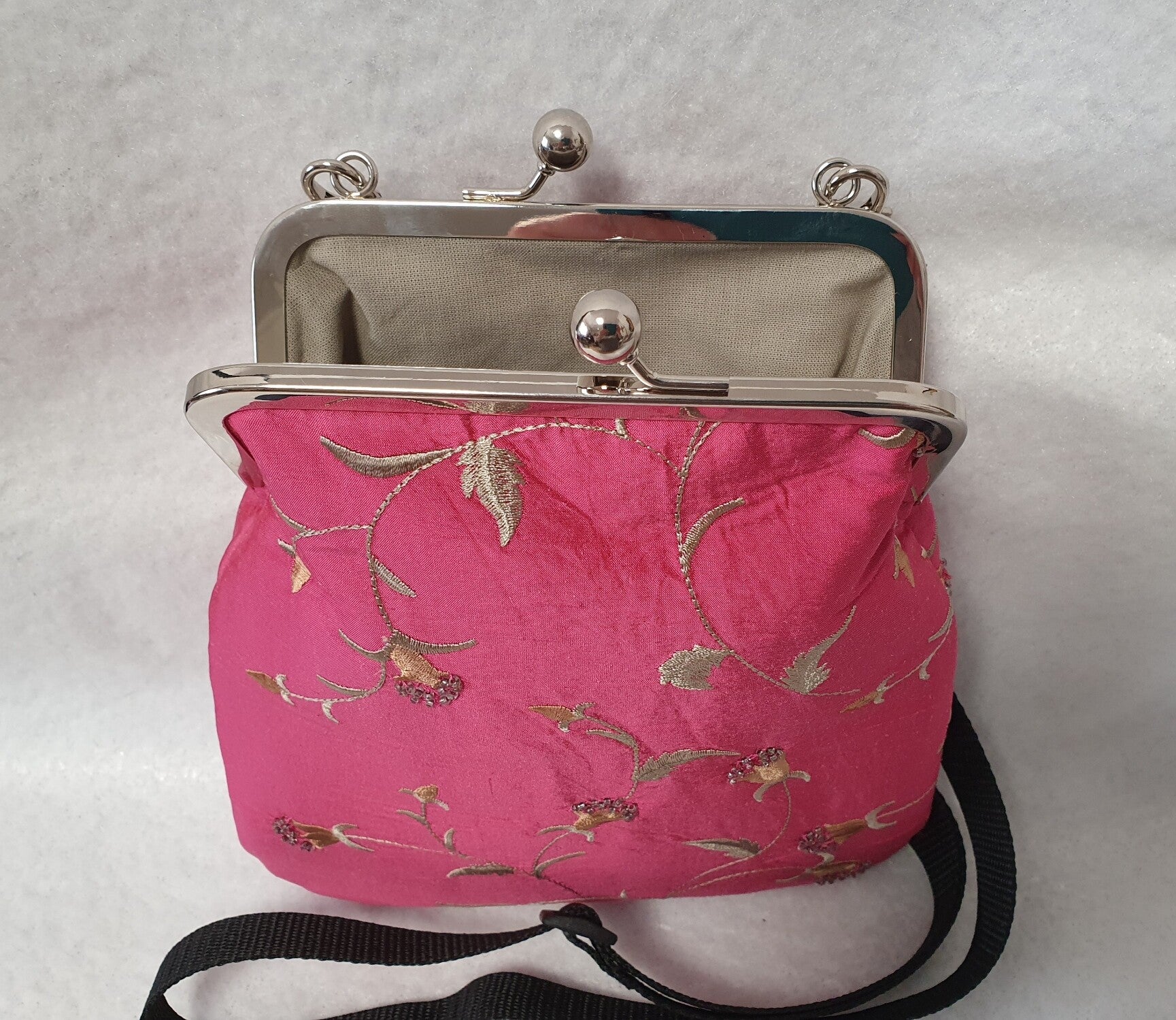 Kukkarolaukku 15cm lukolla ja säädettävällä hihnalla max 150cm. Laukun mitat 21 x 22. Tukena liimahuopa.
