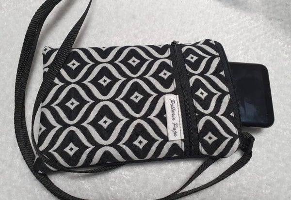 Kännykkälaukku mustavalko