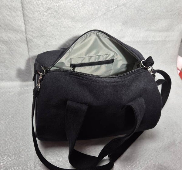 Putkilaukku nro3, uniikki tilaihme esim. harrastuksiin. Molemmissa päädyissä taskut, toinen avo- ja toinen vetoketjutasku. Sisällä myös vetoketjutasku. Laukun materiaalit kierrätysfarkku, liimahuopa ja kevytnailon, joka pitää hieman kosteutta poissa. Laukussa olkahihna max pituus 150 ja lyhyet hantaakit. Laukun mitat kork. 20cm, pituus 30cm.