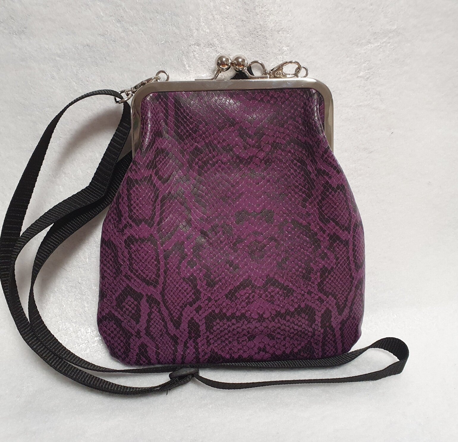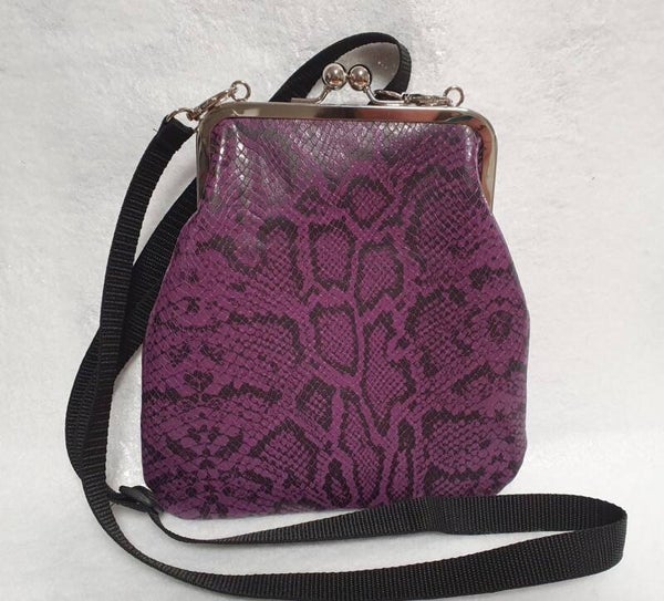 Kukkarolaukku 15cm lukolla. Laukku keinonahka ja sisällä puuvillavuori, tukena liimahuopa. Laukussa säädettävä hihna max. pituus n. 150cm.